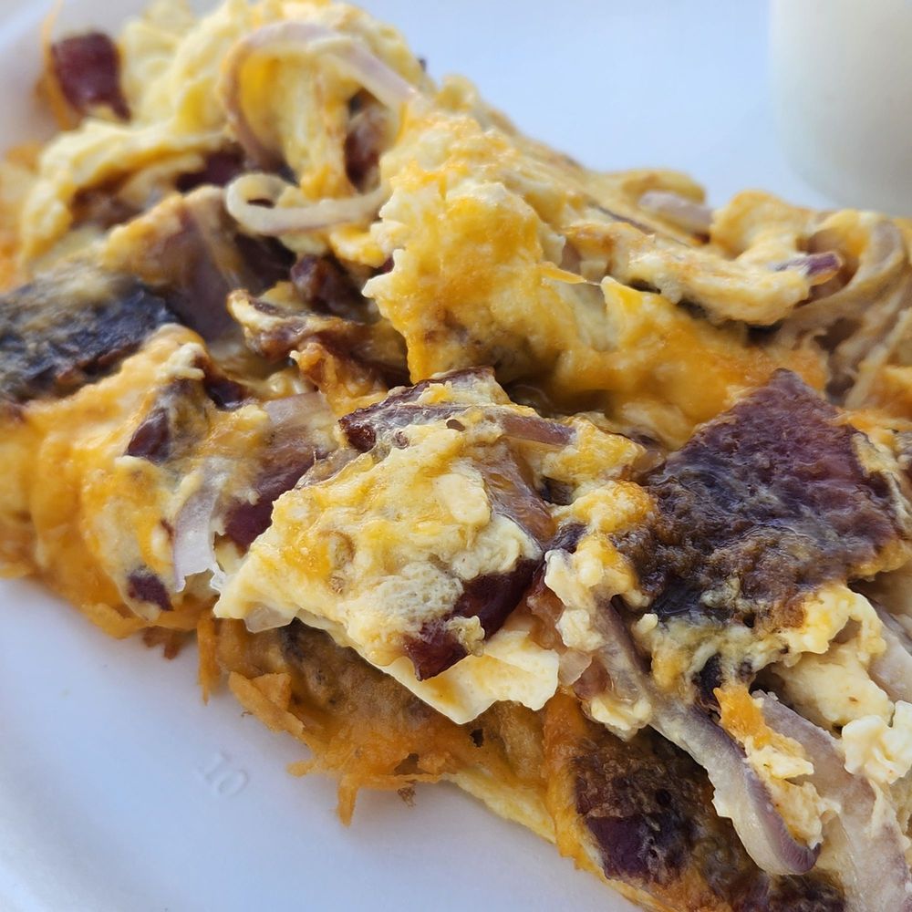 I got a cold brew, and a breakfast burrito with bacon. It comes with Pico, potato’s, egg, and beans. It was good, definitely more of a wrap than a burrito.